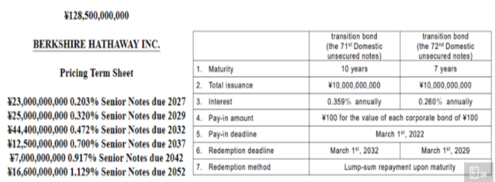 就在今年初,伯克希爾哈撒韋連續第四年發行日元債,發行規模1285億日元。