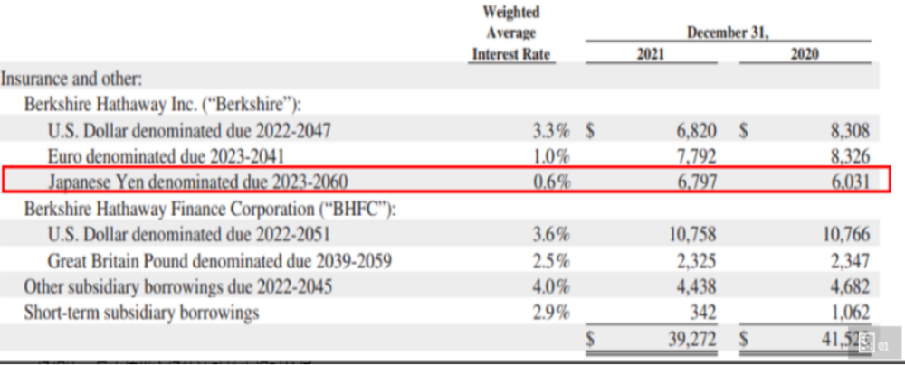 即便是坐擁大量現金的伯克希爾也樂於在此時跑去日本發債融資,截至2021年末,伯克希爾的現金儲備(現金、現金等價物和短期美國國債)達到1467億美元。
