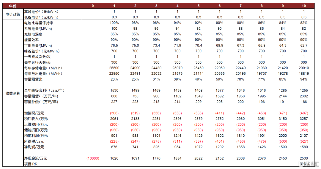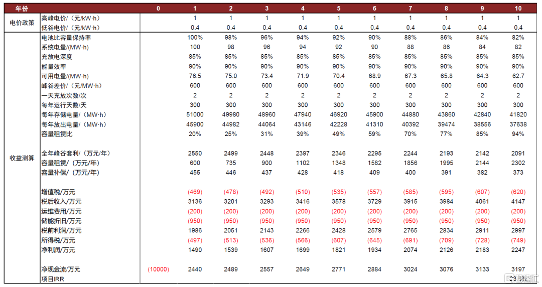 圖表:儲能項目IRR測算(層狀氧化物正極,3000次循環)