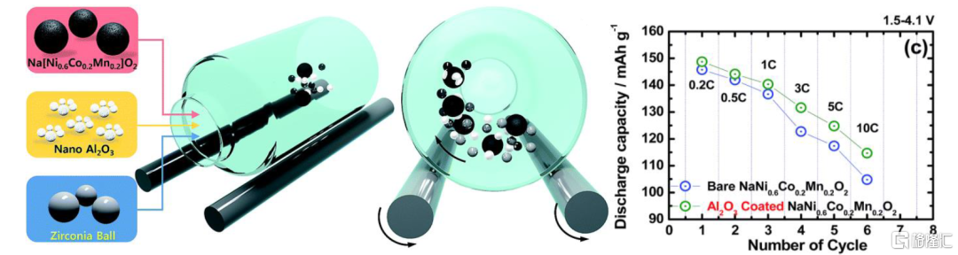 圖表:球形O3型層狀氧化物包覆納米級Al2O3顆粒提高半電池倍率性能