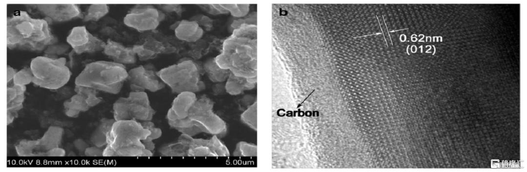 聚陰離子類化合物電導率低,需要通過納米化和碳包覆改善。聚陰離子類化合物中聚陰離子結構單元由很強的共價鍵緊密連接,將聚陰離子基團和過渡金屬離子的價電子隔開,使這類材料工作電壓高,但也導致了電導率低,限制了其在高倍率下的充放電性能。通過納米化材料可以提高活性顆粒和電解液接觸面積,縮短離子擴散路徑,提高電導率;通過碳包覆有助於提高材料表面電子電導率,同時碳包覆層還可以改善顆粒團聚現象。