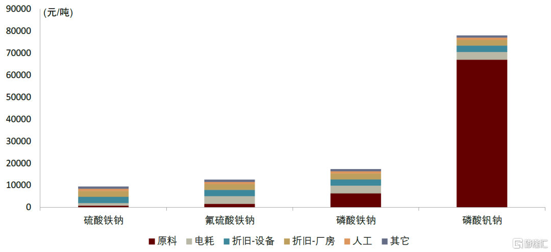 圖表:不同類型鈉離子聚陰離子正極材料成本比例