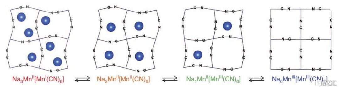 圖表:過渡金屬全為Mn的普魯士藍結構儲鈉機理