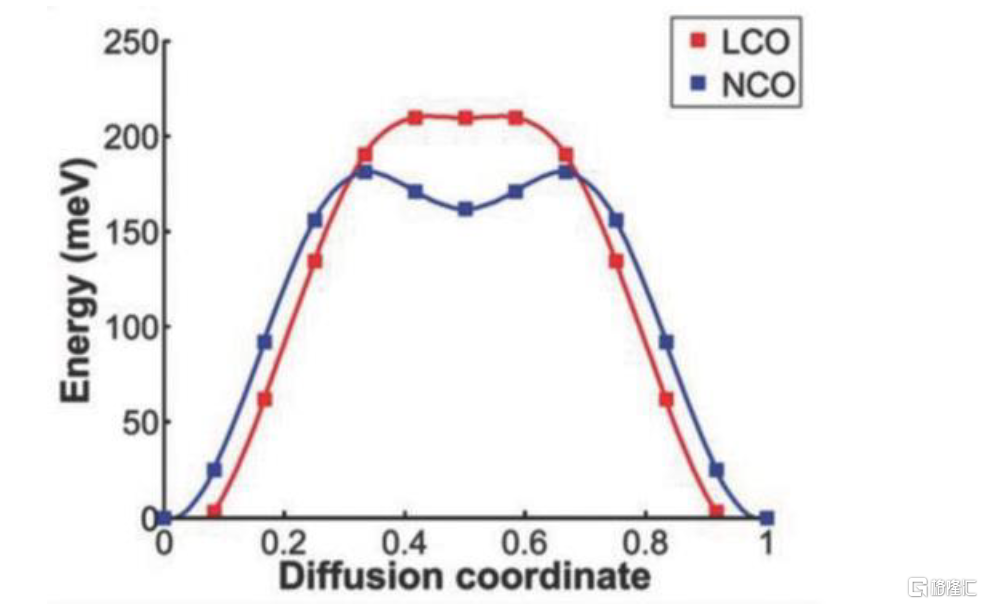 圖表:NaCoO2比LiCoO2的離子擴散勢壘低