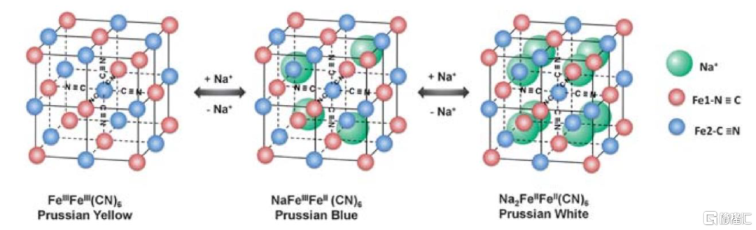 圖表:普魯士藍類化合物製備過程中存在缺陷結構(右圖)