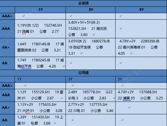 今日公司債企業債交投清淡,收益較昨日有所下行,早盤低估值成交,午后收益轉上,需求集中在1-3年AAA、AA+品種,收盤成交在估值+2-3bp。