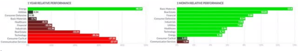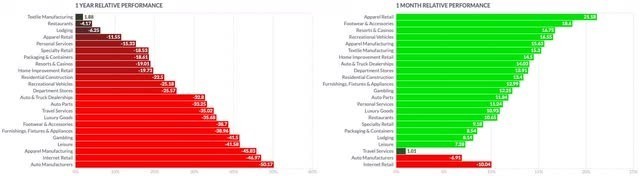最重要的參考資料顯示出好壞參半的情況,而更關注行業的參考資料,如先鋒信息技術ETF (VGT)表現更好,而非必需消費品選擇行業SPDR ETF (XLY)是所分析參考資料中表現最差的。