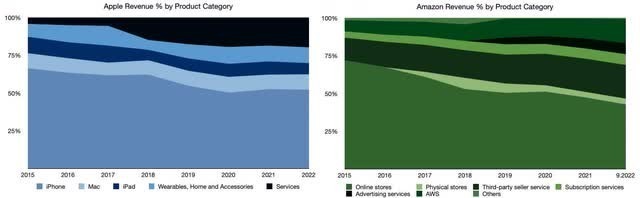 在過去幾年里,蘋果的總體表現優於亞馬遜,而亞馬遜在經歷了多年的相對強勢之后,最近卻遭遇了負面勢頭,這並非沒有原因。
