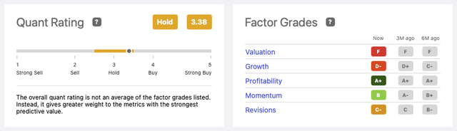 從2021年9月開始,蘋果在Seeking Alpha的量化評級中被評為「持有」,在30個科技硬件、存儲和外圍設備行業中排名第五。