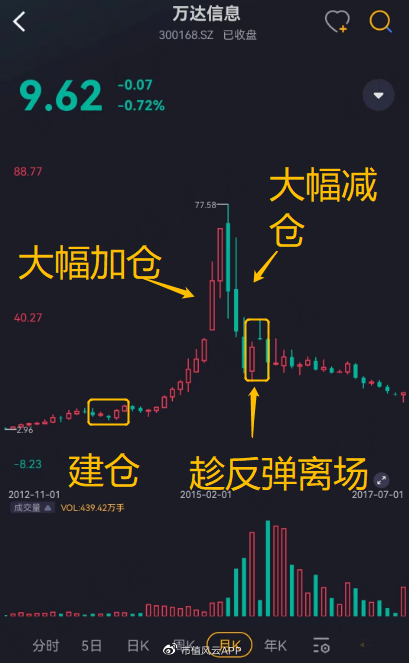以萬達信息為例,當時熱炒「互聯網+」概念,杜猛在2013年下半年建倉萬達信息,在2015年上半年大舉加倉,不料遇到股災,只能在下跌中不斷拋售,並在2015年Q4市場反彈時徹底離場。