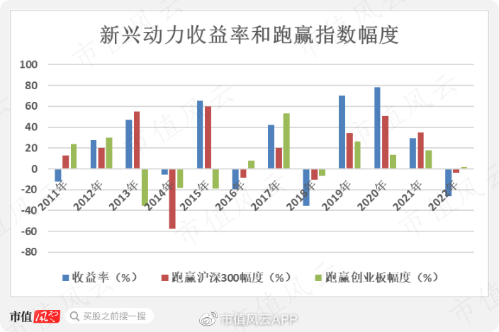綜合來看,2013-2015年的創業板牛市中,新興動力僅取得1.3倍收益,同期創業板指大漲2.8倍。