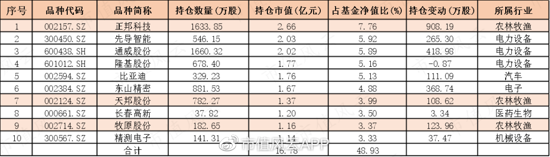 截止2022年Q3,新興動力前十大持倉有7只票屬於新能源板塊,其余3只是養豬的牧原股份、做打印機的納思達和做PCB的東山精密。