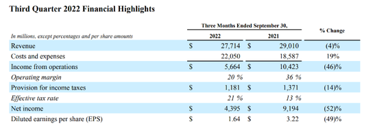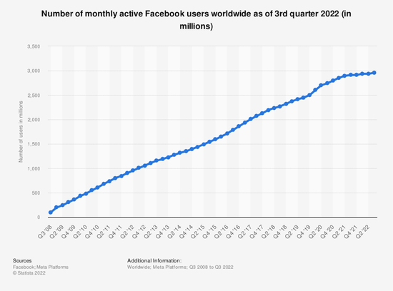 廣告是Meta最主要的收入來源,第三季度佔比98.28%。因此,活躍用户數量對於Meta的營收是一個關鍵指標。儘管用户總數有所增加,但由於通脹和利率不斷上升,企業紛紛削減廣告支出。Meta報告稱,自2021年以來,其每則廣告的價格下降了18% ,並可能陷入衰退。第三季度,Meta的廣告收入同比下降了3.7%。