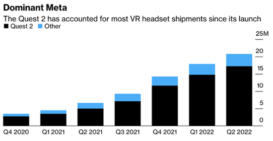 2023年,Meta還將發佈一款VR頭顯Quest 2的后續產品。不同於最近發佈的售價高達1500美元的Quest Pro,這將是一款消費級產品。但Quest的銷量前景並不太樂觀,儘管它已經是全球範圍內銷量最高的VR一體機。此前Meta採用了硬件補貼的方式銷售Quest系列,但這項政策已經在今年7月取消,Quest 2的售價提高了100美元。