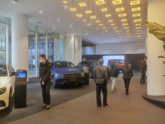 11月20日9點至11點,朝陽區京順路門店內有六七波顧客在看奔馳的傳統燃油車型,但沒有一位顧客在看奔馳的電動車。