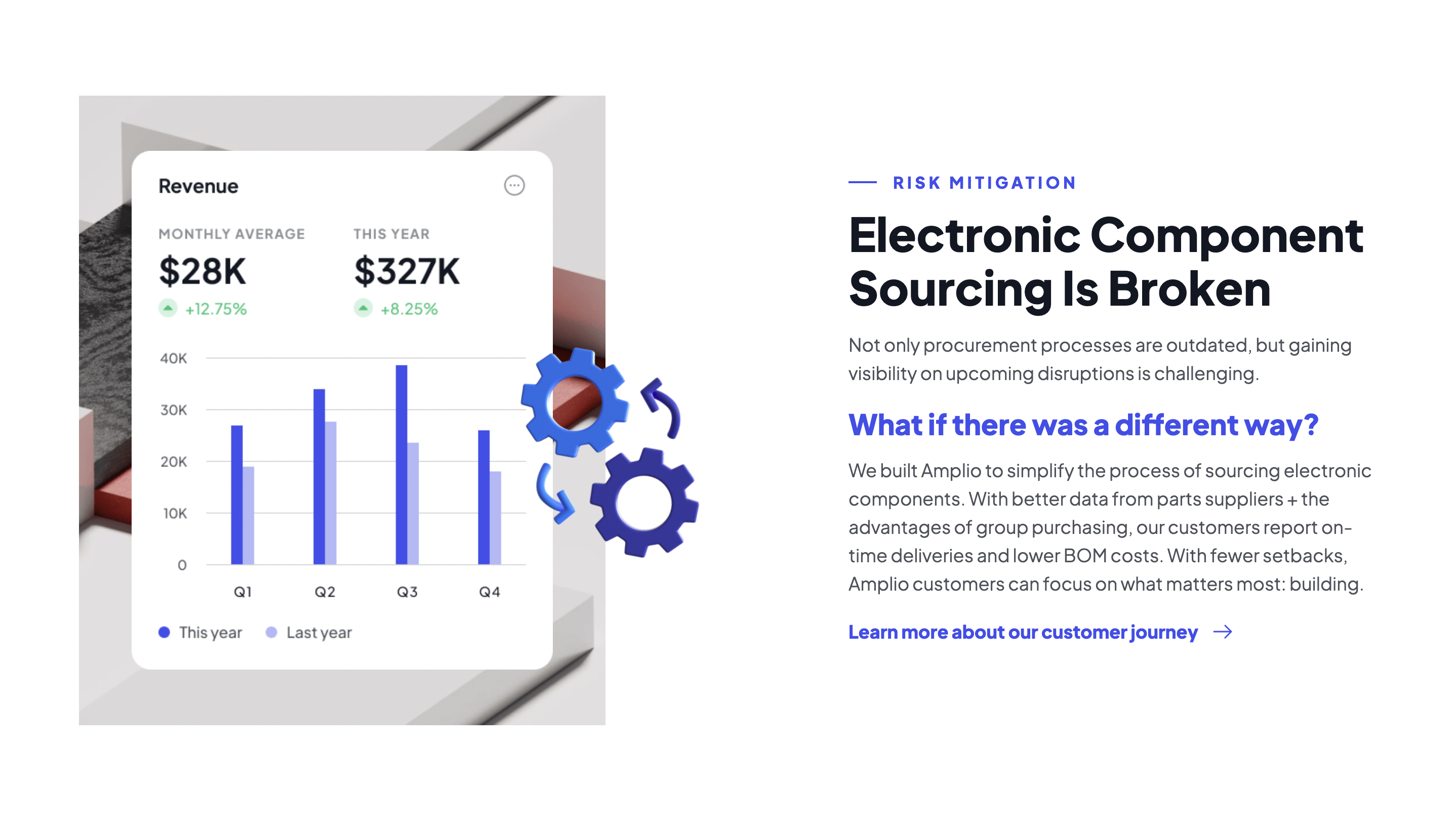 「Amplio」成立僅一年,希望幫助製造商構建一個跟蹤零部件採購、預測短缺的系統。首席執行官兼聯合創始人Trey Closson表示,該公司的目標是為電子元件供應鏈中的企業賦予更強的靈活性。