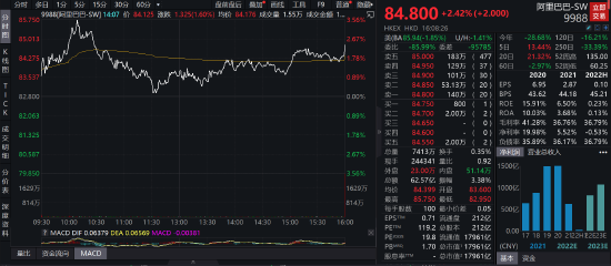 阿里獲2443萬股資金湧入,價值大約20億港元,最后1分鍾漲0.47%