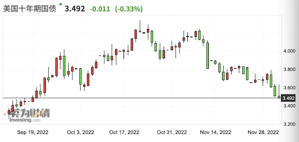 這一切的觸發點就是10月低於預期的通脹數據,12月美聯儲加息50BP而非75BP的概率似乎已接近100%。美聯儲主席鮑威爾在上周布魯金斯學會發表講話稱:「放緩加息步伐的時機最早可能在12月會議上出現。」市場認為這屬於鴿派措辭,鮑威爾如此言論等同於告訴市場,FOMC會在12月僅加息50BP。這是市場苦等許久的轉向。鮑威爾還表示:「減少對預測數據的依賴意味着加強風險管理,而在當前節點,降低加息幅度是平衡過度加息風險的好方法。」他還表示,「不想過度收緊,所以現在要放緩加息步伐。」不過,鮑威爾也坦言,「降低利率不是近期考慮的事宜。」