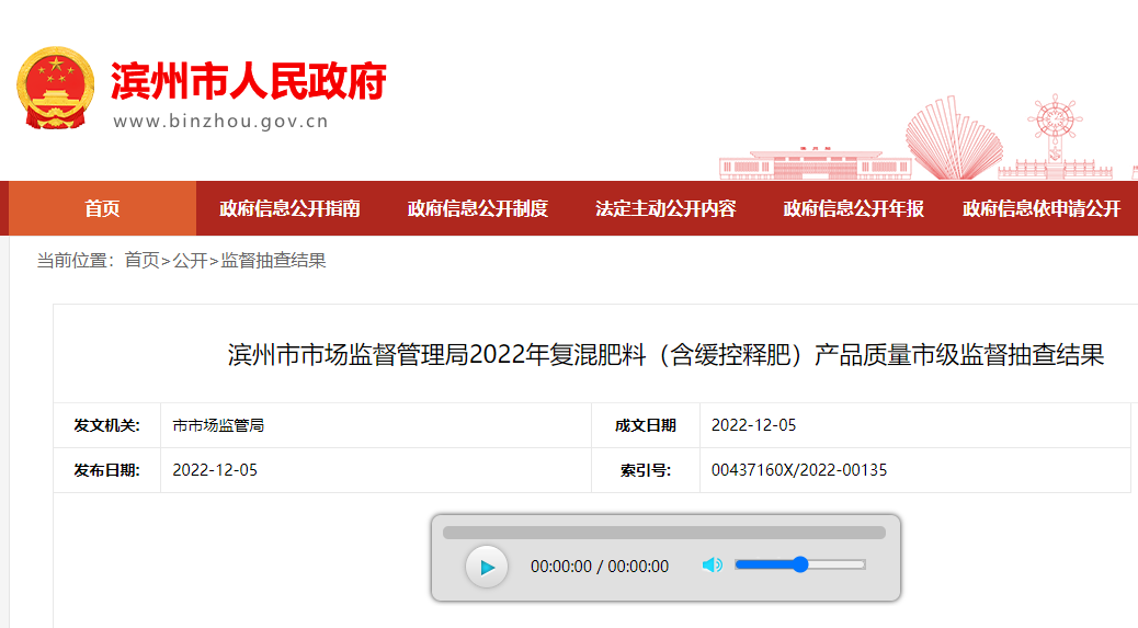 中國質量新聞網訊 近日,山東省濱州市市場監管局公佈2022年復混肥料(含緩控釋肥)產品質量市級監督抽查結果。本次抽檢50批次復混肥料(含緩控釋肥)產品,2批次不合格。
