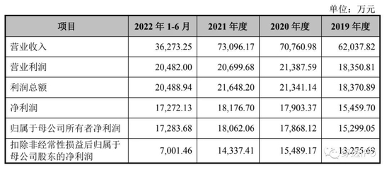 2019年-2022年6月,漢王藥業分別實現營業收入6.2億元、7.08億元、7.31億元、3.62億元;歸母淨利潤分別為1.55億元、1.79億元、1.81億元、1.73億元,扣非淨利潤分別為1.33億元、1.55億元、1.43億元、7001.46萬元。