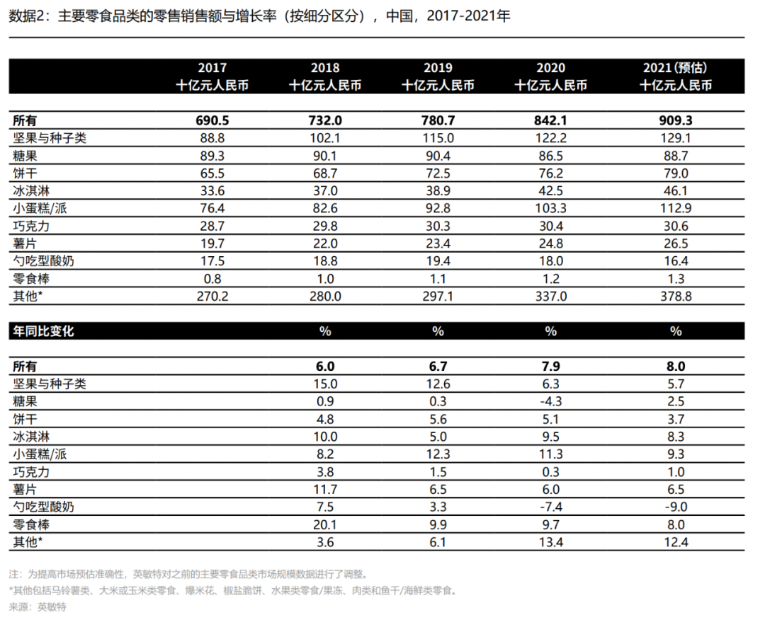 對費列羅而言,冰淇淋也可以説是其衝擊「中國包裝類甜食排名前三」目標的合理選擇。小食代從英敏特2022年發佈的零食消費趨勢報告獲悉,在甜食賽道,冰淇淋不僅規模大於巧克力,市場增速也一直明顯高於后者。