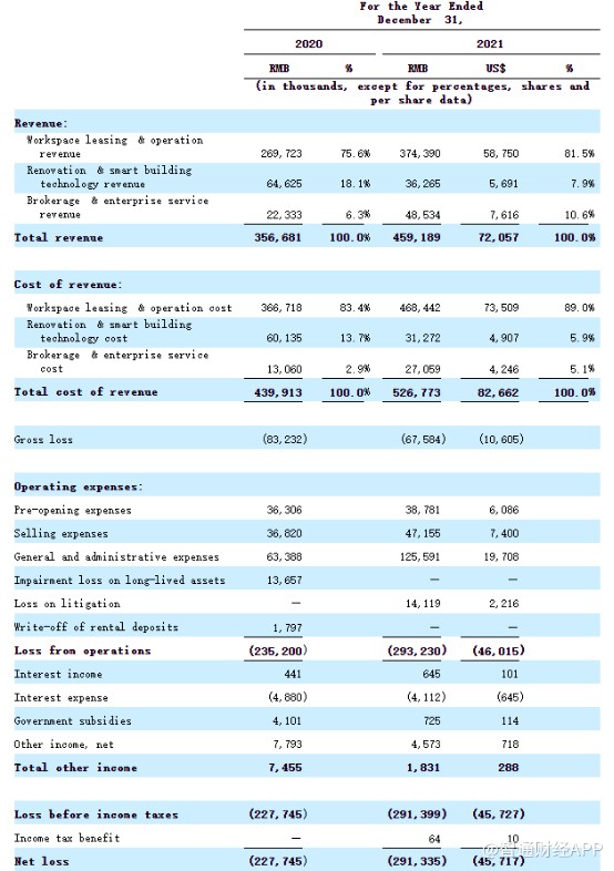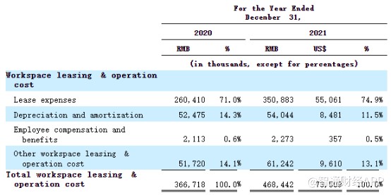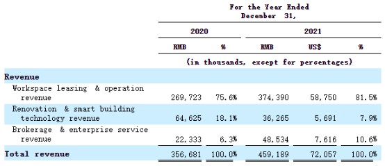 而從堂堂加目前的營收結構來看,公司主要營收可分為辦公空間租賃和運營、裝修和智能建築技術、經紀和企業服務。2020年和2021年,辦公空間租賃和運營營收佔總營收的比例分別為75.6%和81.5%,仍然是業績支柱,而包括智能建築在內的其他業務的收入佔比並不大。