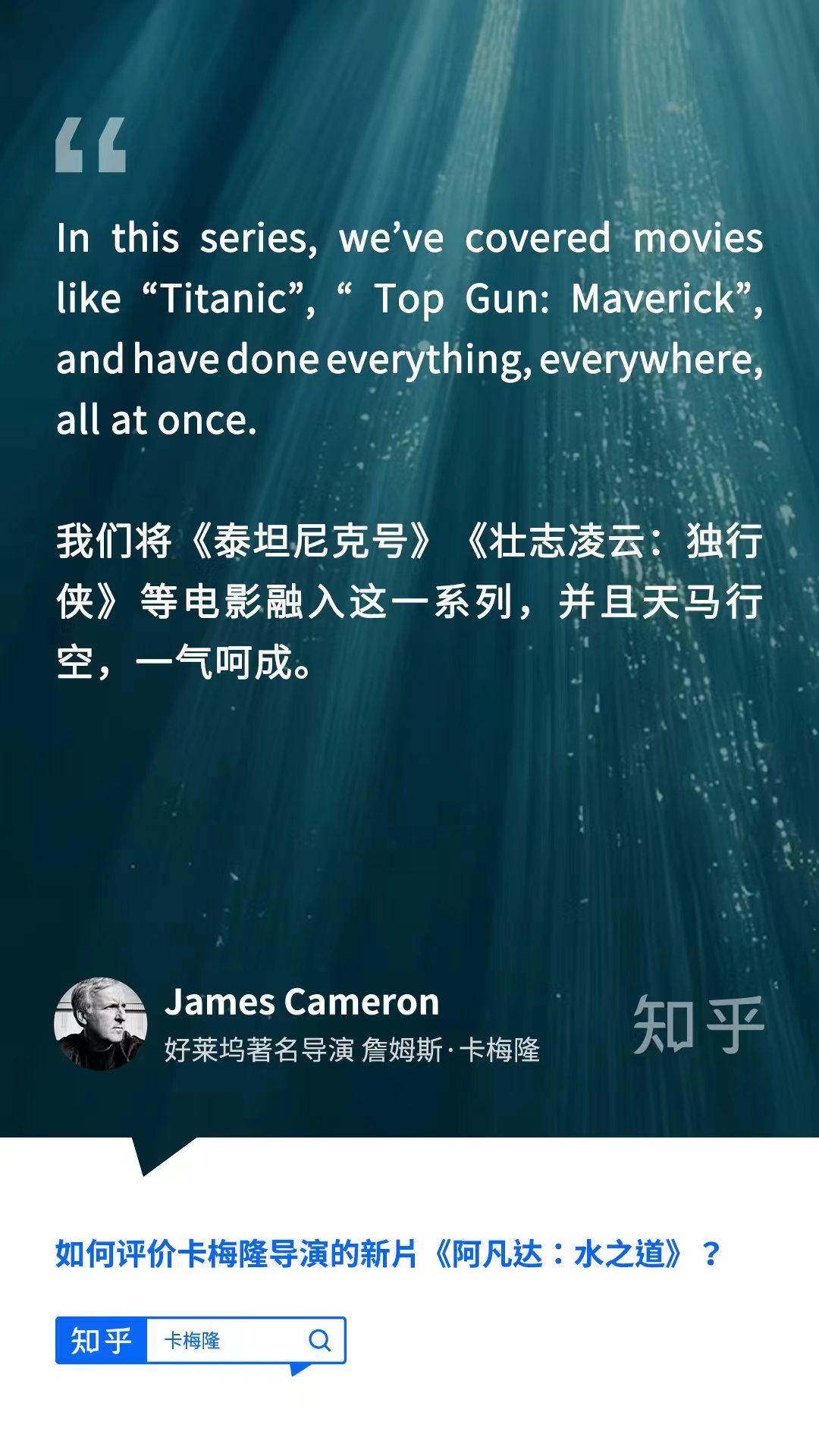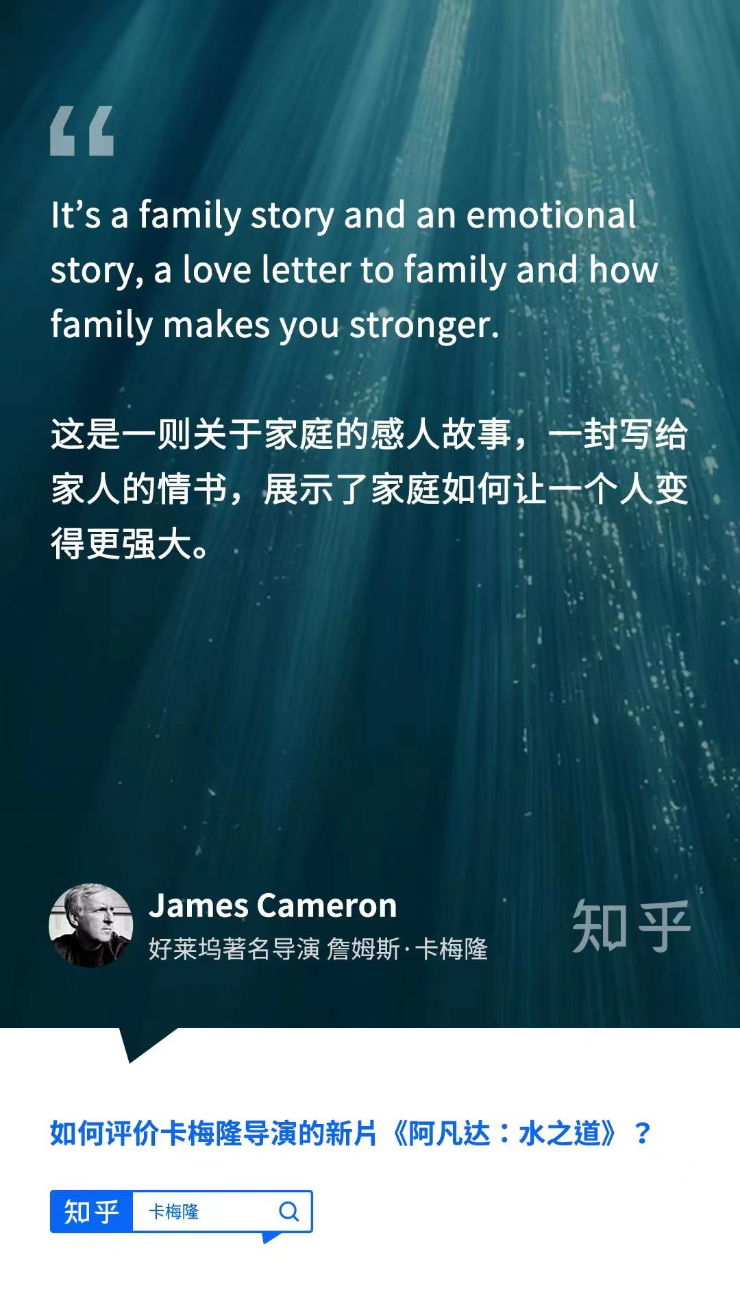 (原標題:導演卡梅隆在知乎親自答:《阿凡達2》是一封寫給家人的情書)