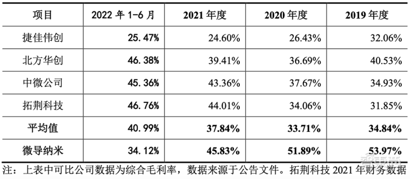 2021年,微導納米首臺半導體領域設備實現銷售,毛利率為52.20%。故其半導體領域設備的毛利率高於同行業可比公司平均水平。