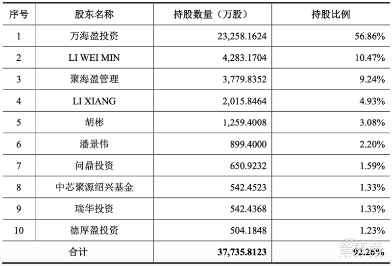 以下是微導納米前十大股東持股情況: