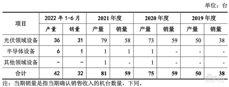 2019年、2020年、2021年、2022年上半年,微導納米專用設備產量分別為50台、75台、81台、42台,銷量分別為38台、59台、59台、32台。