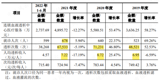 2021年,公司旗下連鎖血液透析中心醫療服務營收大約5000萬元,就診人次總計678人,透析次數6.7萬次,大約每位病人每年治療100次,人均透析收入達到7.2萬元,即單次720元。
