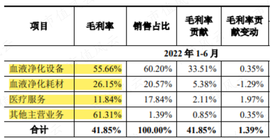 根據公司披露,血液淨化設備主要作為獨立血液透析中心或醫院透析科室的固定資產投入,折舊時間普遍較長,並且下游客户的議價能力較強,導致血液淨化設備的毛利率與耗材相比相對偏低。