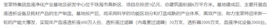 2022年7月,寶萊特集團血液淨化產業基地及研發中心主體工程正式封頂,項目將於2023年建成投產使用,投資額5億元,建成后將實現年產透析器2000萬支,設備2000台,血液透析液400萬人份,透析液過濾器50萬支。