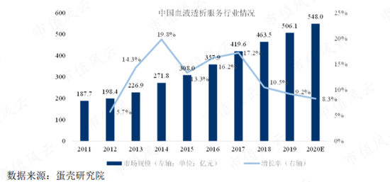 細分來看,其中透析服務(包括藥品)市場規模佔比在80%以上,而以透析機為主的透析產品市場規模則佔比較小。