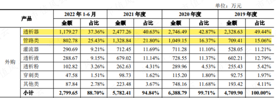 原因很簡單,公司截止2022年上半年的耗材還是「外購」為主,並非自產,也就是説公司扮演了二道販子的角色——在人家外資生產商已經吃飽后又吃了26%的利潤加成。