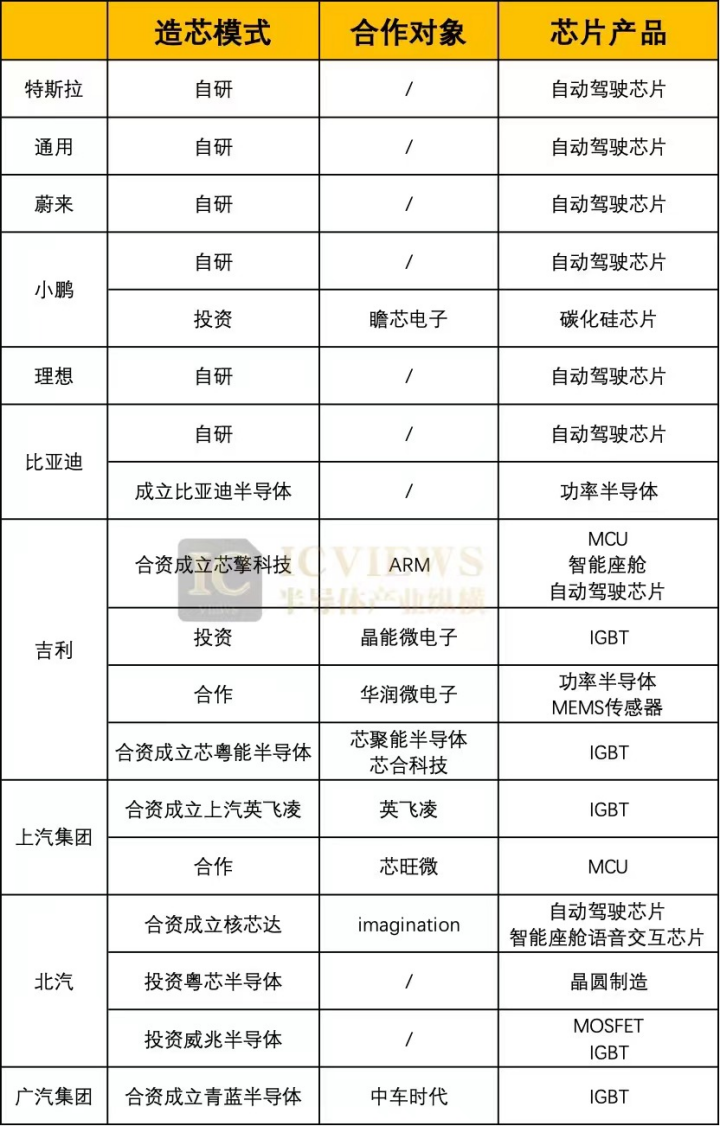 對比其他車企造芯的情況