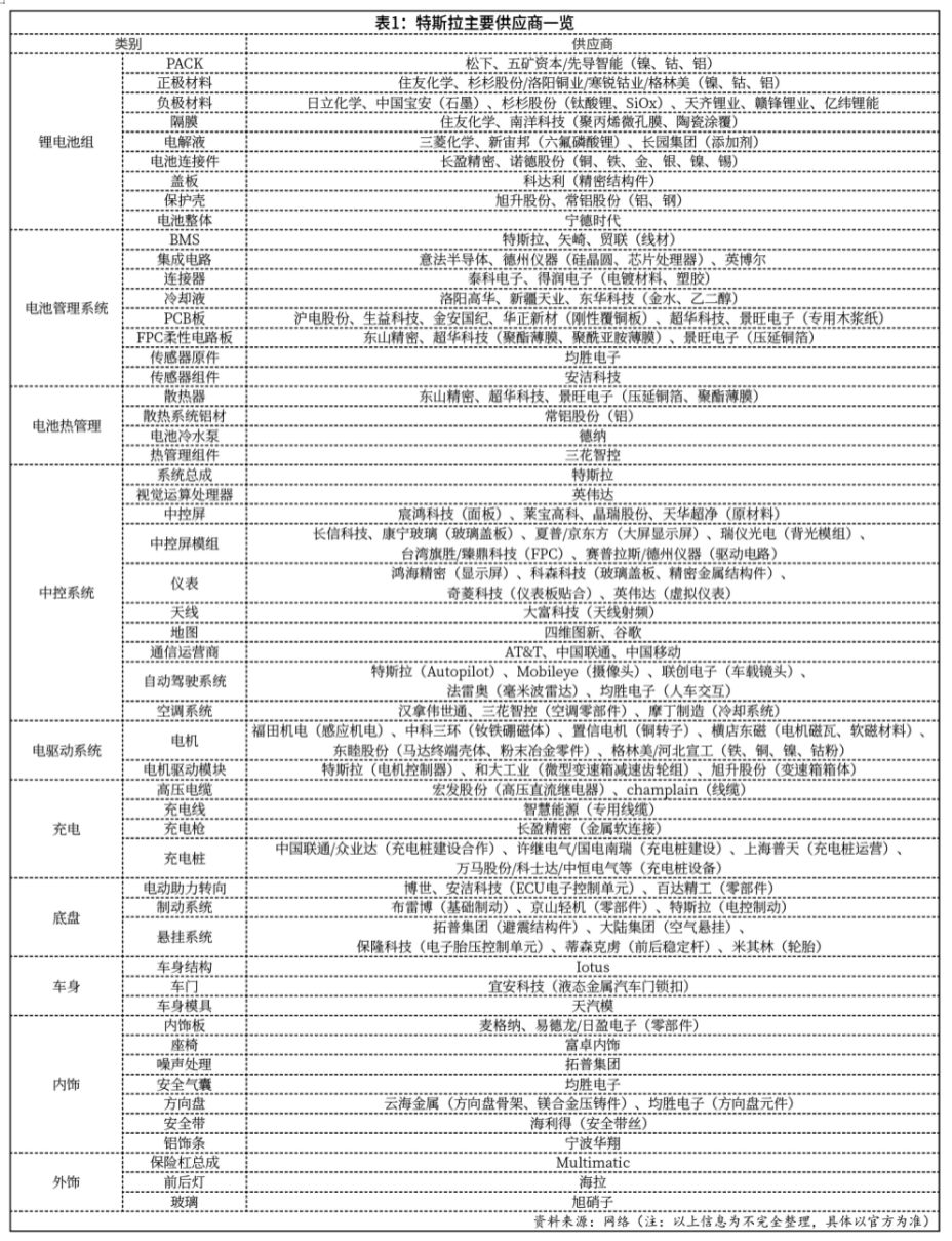 根據上圖,特斯拉帶動了相當一部分中國的供應商的業務。對於中國供應商來説,特斯拉來了,爲了跟成本更低的中國品牌競爭,肯定要大規模國產,這導致供應鏈必然更傾向於中國本地廠商或者將原供應商引入中國。不管怎麼樣,特斯拉對應的供應鏈、產業鏈要在中國落地生根。這也就帶動了中國的新能源汽車供應鏈。