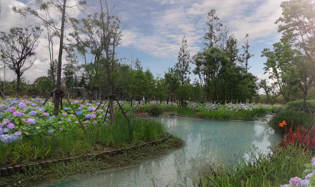 公園以「四季」為主題,分別打造以日本長穗紫藤、櫻花為主的春園,紫薇、八仙花為主的夏園,銀杏、紅楓為主的秋園,以及梅花、臘梅為特色的冬園。園內還擁有多種花境形式:岩石花園、旱溪花園、鐵塔花境,形成公園的四季風光,成為市民前來打卡的特色園區。