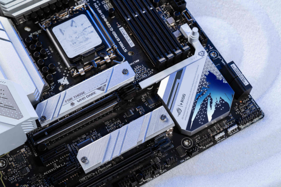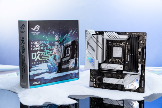 特別值得一提,備受玩家喜愛的吹雪家族再添新成員——ROG STRIX B760-G GAMING WIFI D4小吹雪主板。作為ROG STRIX系列首款銀白配色的MATX主板,華碩B760小吹雪將成為玩家打造白色主題主機的上佳之選。這次華碩B760吹雪D4和華碩B760小吹雪D4主板顏值超競化,身披銀白機能裝甲,更將虛擬代言人雪武戰姬形態剪影巧妙融入其中,豐富的配件上也有雪武戰姬的身影,格外引人矚目。I/O裝甲上精心設計的RGB燈效,支持神光同步,顏值拉滿,是二次元愛好者和遊戲玩家的破次元電競利器。