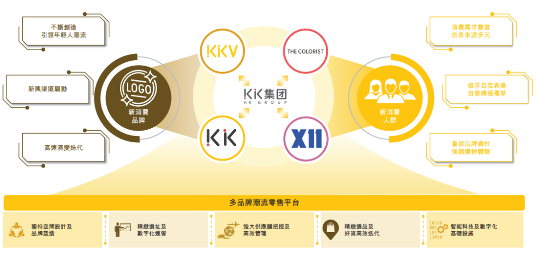 KK集團專注於潮流零售店的運營,該等零售店通過DTC模式提供各具特色的商品,而公司於自有門店或公司通過門店管理安排所管理的加盟店直接為客户服務。