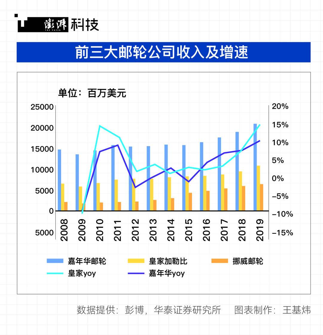 根據《2017中國郵輪產業發展報告》,中國在2017年以擁有212萬郵輪遊客成為全球第二大郵輪市場。2019年發佈的《郵輪經濟發展報告》則顯示,2018年中國13個郵輪港出入境旅客上升到488.67萬人次。根據皇家加勒比國際遊輪公司的數據,2006年到2019年,國際郵輪品牌先后在中國部署了23艘郵輪,平均每年在中國市場的營銷投入高達36億元人⺠幣,從而創造了中國郵輪市場高達52%的年複合增⻓率。