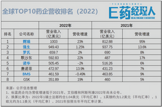 輝瑞依然穩坐全球製藥TOP1寶座,且成為全球首個年收入超千億美元的製藥企業。