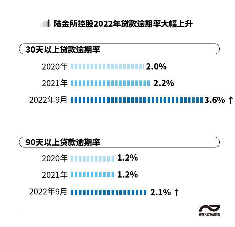 需要注意的是,在新增貸款規模下滑的同時,去年信貸質量有所惡化,貸款的逾期率出現了明顯的上升。根據招股書,截至2022年9月30日,陸金所的30天以上貸款逾期率和90天以上貸款逾期率較2021年和2020年均發生較大幅度的上升。與此同時,陸金所控股的信用減值損失不斷擴大,2020年、2021年和2022年前三季度分別為30億元、66億元及103億元,分別佔期內收入的5.8%、10.7%及22.5%。對此,陸金所在招股書中稱,「由於我們的核心小微企業主部門一直是受宏觀環境惡化影響最早及最嚴重的部門之一,我們的逾期率及信用減值損失不斷上升,影響了2022年前9個月的盈利能力。」