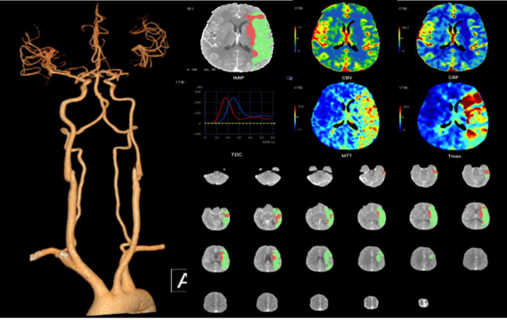 其「數字腦」系列產品實現了對卒中患者的一站式智能化影像評估,包括平掃CT (NCCT)、CT動脈血管成像(CTA)和CT灌注成像(CTP)等檢查場景。對於多模態CT掃描數據,可在3-5分鍾內自動輸出所有重建與分析結果,降低后處理與閲片時間的耗損,讓卒中患者的救治流程更加智能化。