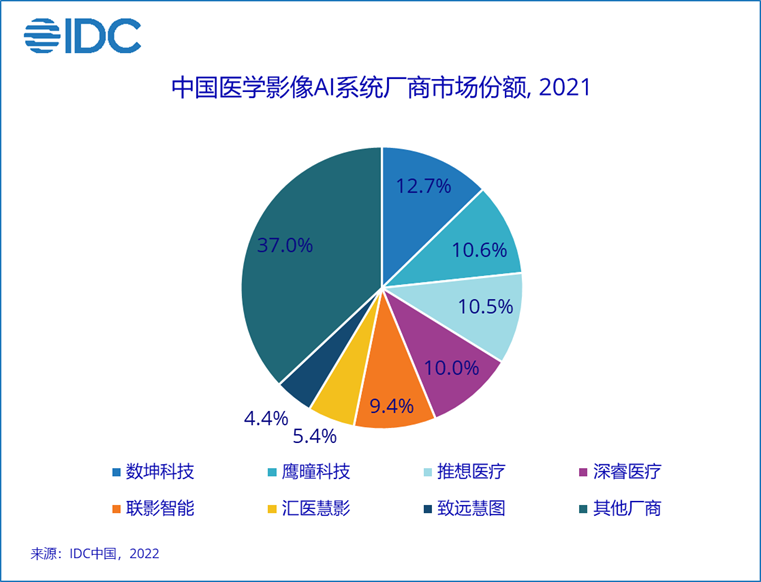 其中,數坤科技及其子公司語坤科技、鷹瞳科技、推想醫療、深睿醫療、聯影智能的多個醫學影像AI產品已經獲得了第三類醫療器械註冊證,依託於公司綜合的產品研發能力和廣闊的市場合作,佔據了領先地位。另外,匯醫慧影、致遠慧圖、科亞醫療、醫準智能等廠商也不斷拓展產品線,創新應用及商業模式,市場份額也緊隨其后。整體上隨着人工智能醫學影像產品和商業模式正不斷創新,市場競爭將日趨激烈。
