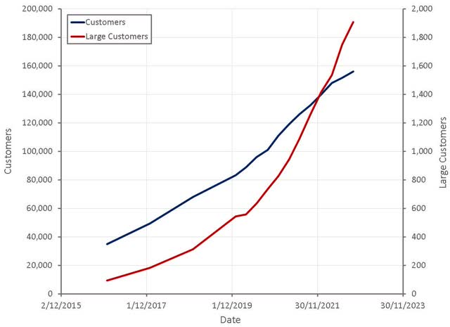 理想情況下,客户增加將在2023年加速,因為這是長期增長的驅動力,但在短期內,現有客户羣的擴張和大客户的增加可以説更重要。