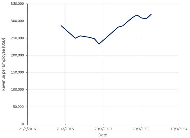 Figure 10: Cloudflare Revenue per Employee (source: Created by author using data from Cloudflare)
