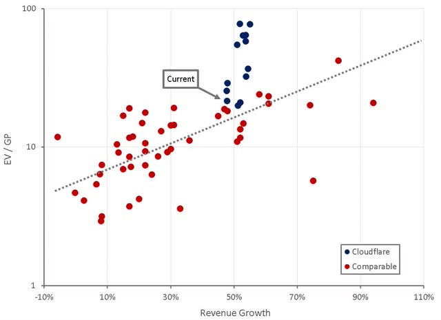 Figure 12: Cloudflare Relative Valuation (source: Created by author using data from Seeking Alpha)