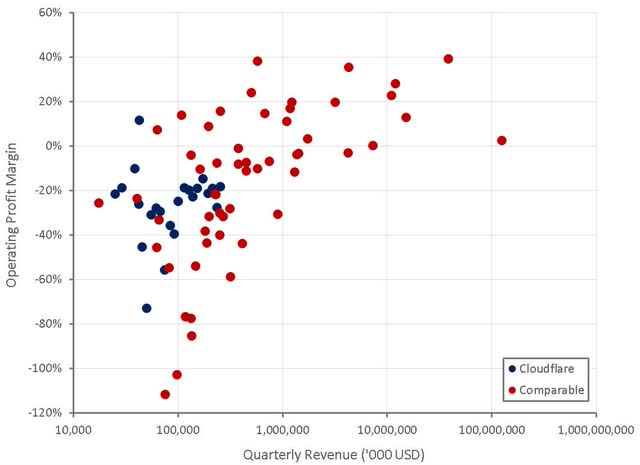 Figure 8: Cloudflare Operating Profit Margins (source: Created by author using data from company reports)