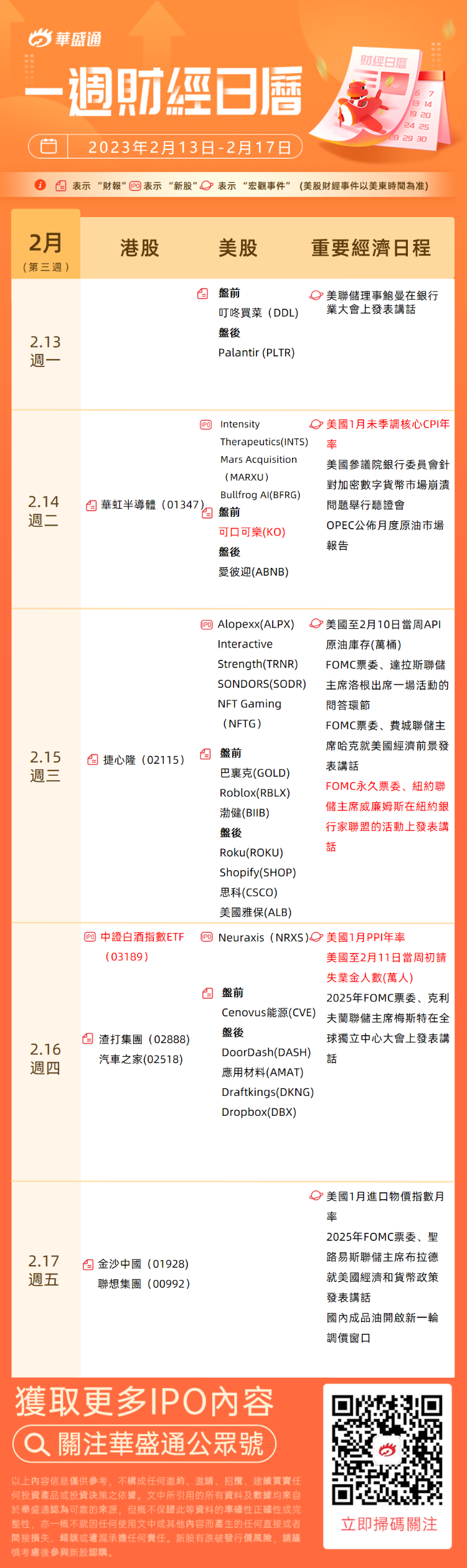 編者按:周二,美國將公佈2023年1月CPI;洛根、威廉姆斯將輪番登場,投資者需關注其對於經濟和美聯儲政策的最新觀點;華虹半導體、可口可樂、叮咚買菜將公佈財報>>